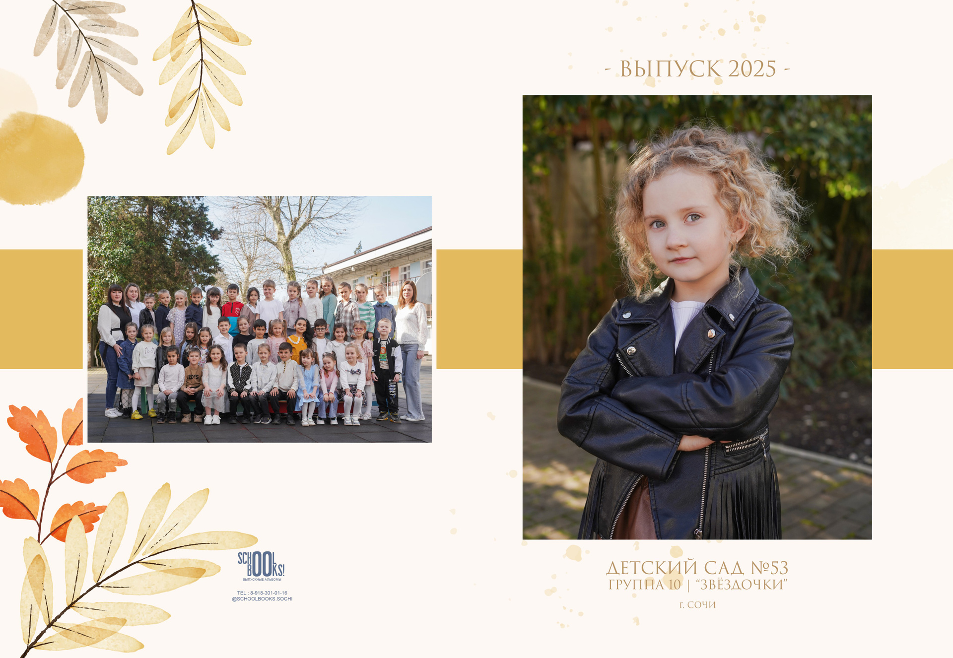 - персональная обложка с портретом + общее фото на задней части альбома;